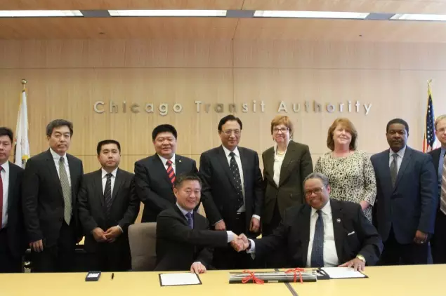 美國當?shù)貢r間2016年4月15日,中國中車與芝加哥交通管理局(CTA)在美國芝加哥就856輛地鐵車輛項目舉行了簽約儀式。中國中車集團公司、股份公司董事長崔殿國與中國中車股份公司副總裁余衛(wèi)平見證了簽約儀式。具體負責該項目的中國中車四方股份公司總經(jīng)理馬云雙與芝加哥交通管理局總裁卡特在項目上簽字。美國當?shù)貢r間2016年4月15日,中國中車與芝加哥交通管理局(CTA)在美國芝加哥就856輛地鐵車輛項目舉行了簽約儀式。中國中車集團公司、股份公司董事長崔殿國與中國中車股份公司副總裁余衛(wèi)平見證了簽約儀式。具體負責該項目的中國中車四方股份公司總經(jīng)理馬云雙與芝加哥交通管理局總裁卡特在項目上簽字。