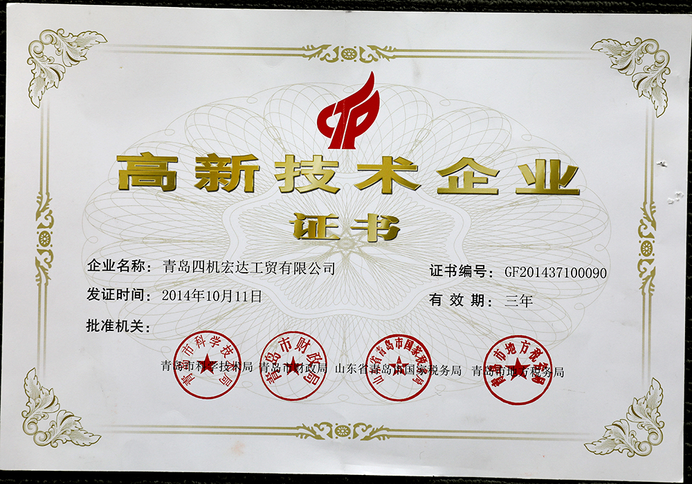 2011年10月,首次被評(píng)定為青島市高新技術(shù)企業(yè),保持至今。